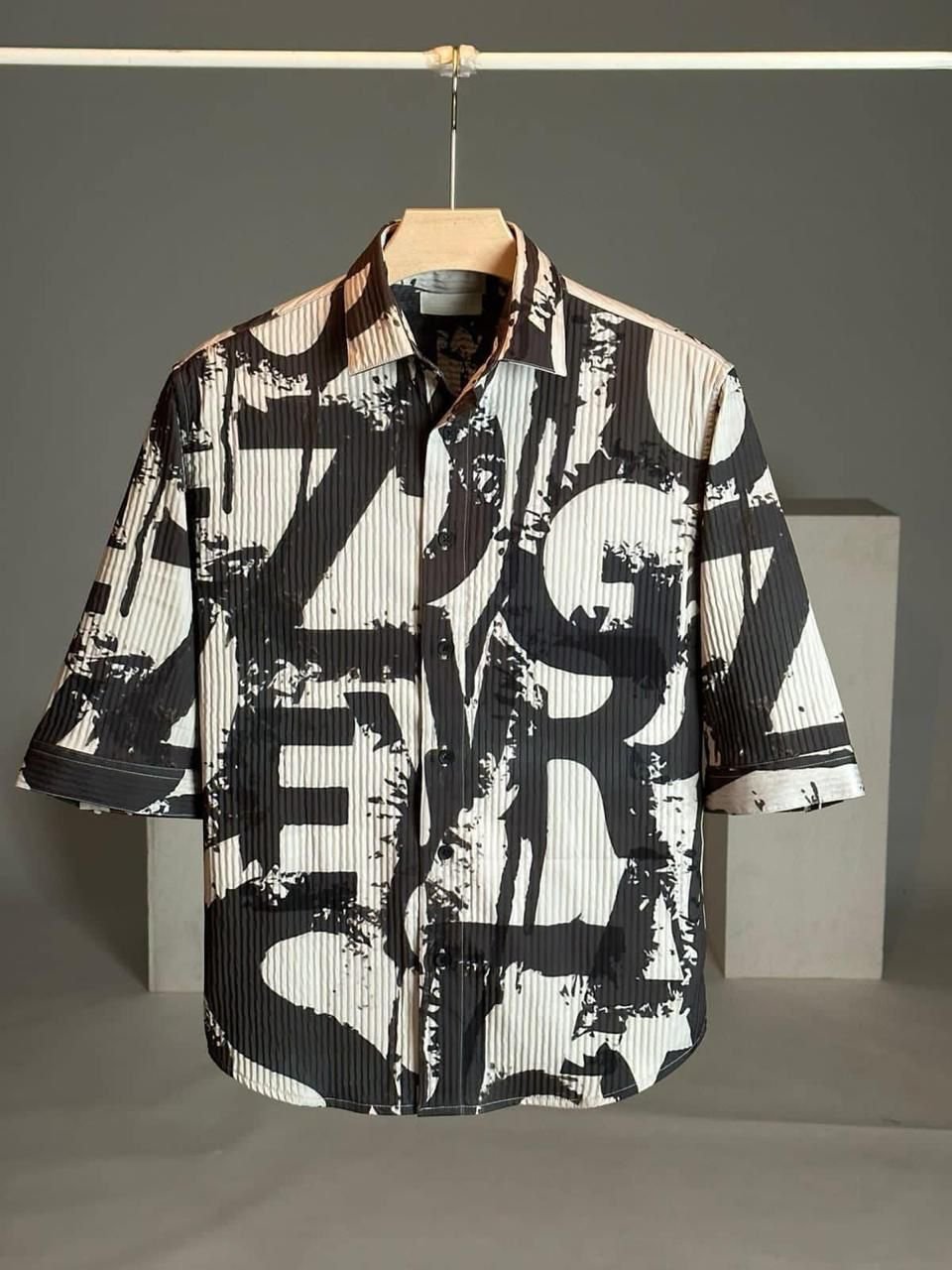 CRAZY IMPORTED DOUBLE CLOTH PRINTED FABRIC DOWNSHOULDER 3/4 SLEEV SHIRT