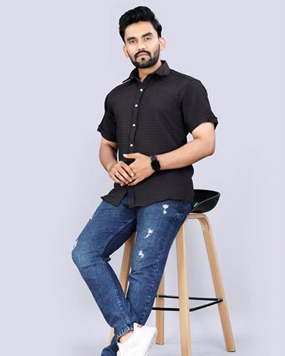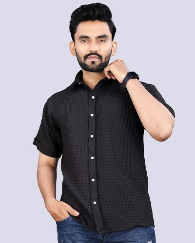 MEN’S EXCLUSIVE HEVY COTTON COD LUDO CHECKS BLACK SHIRT